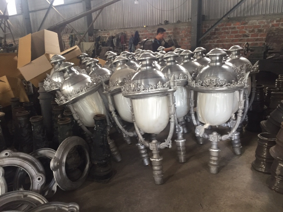 - Chất liệu chính làm nên cột đèn sân vườn chủ yếu là nhôm đúc áp lực cao hoặc gang đúc ( hoặc thân cột làm từ thép kẻ dọc ), hay nhôm định hình cơ tính cao